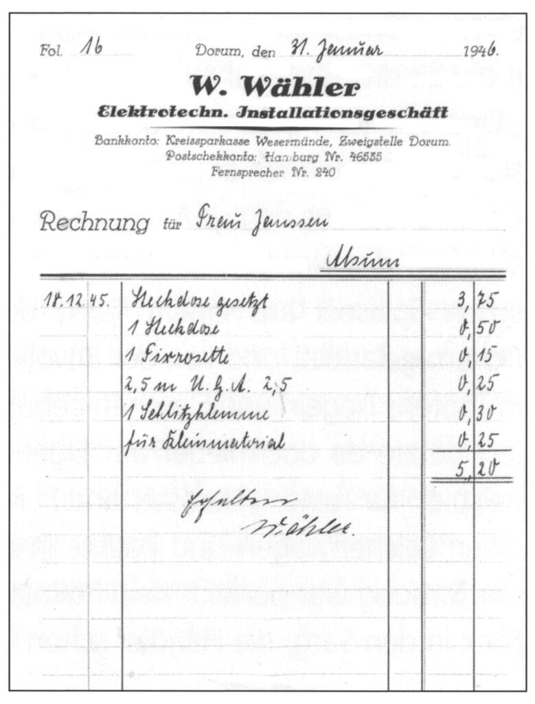 Wilhelm Wähler eröffnet gemeinsam mit seiner Frau Ella am Markt 1 in Dorum ein Elektroinstallationsgeschäft.